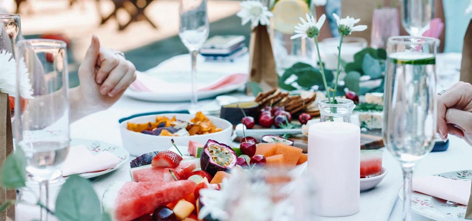 Vare sig man bor i slott eller koja så är det enkelt att bjuda in till lunch eller middag på sommaren. Bjud in familj & vänner. Packa en korg med goda sallader, bröd och frukt och slå er ner utomhus i det gröna. Svårare än så behöver det inte vara.